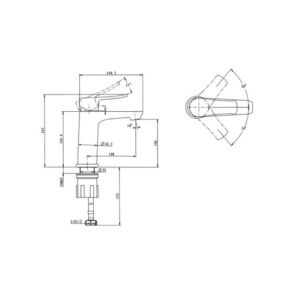 Подвод воды: 3/8″, 1/2″, латунные трубки, эксцентрики, шланговое соединение