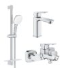 Комплект Grohe Cubeo — продуманное решение для ванной комнаты, выполненное в современном геометричном дизайне, который подчеркивает стиль и эстетику пространства. Все элементы набора объединены единым визуальным характером: прямые линии, четкие формы и лаконичность. Смесители оснащены надежными керамическими картриджами GROHE SilkMove, обеспечивающими плавность и точность регулировки температуры и напора воды.