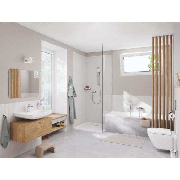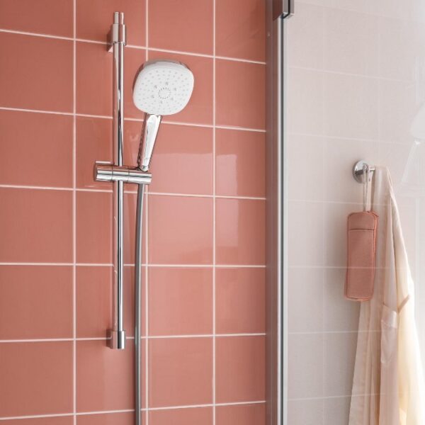 Долговечное хромированное покрытие GROHE Long-Life защищает поверхность от потускнения, коррозии и механических воздействий, сохраняя блеск на долгие годы. Система экономии воды помогает сократить расход без потери качества и комфорта. Душевой гарнитур Tempesta Cube 110 дополняет комплект функциональностью: три режима струи, удобная душевая штанга и защита от известкового налёта обеспечивают комфорт и надежность в ежедневном использовании.