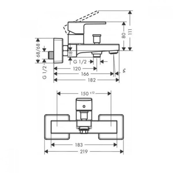 1. Змішувач Hansgrohe Vernis Shape для ванни, одноважільний, хром (71450000):