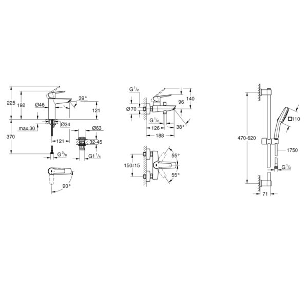 - GROHE FastFixation (регулируемый верхний кронштейн для установки в имеющиеся отверстия)