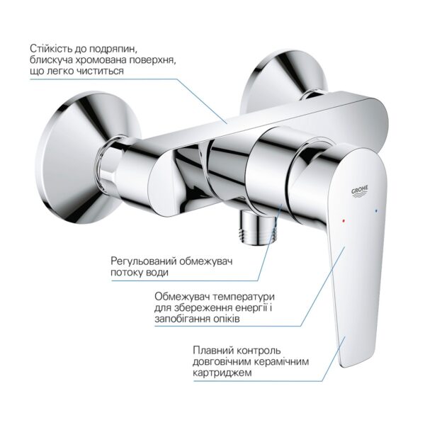 GROHE FastFixation (регулируемое расстояние между настенными креплениями штанги позволяет использовать для монтажа уже имеющиеся в стене отверстия)