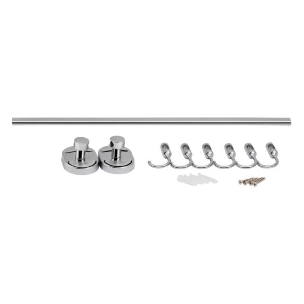 Держатель для полотенец и халатов Lidz (CRM) 114.08.06 выполнен в виде планки с пятью передвижными крючками на нем. Он крепится на стену на удобной высоте к вставкам с декорированными элементами с помощью монтажных элементов, которые входят в комплект. Скрытый монтаж позволяет сохранить отделку ванной комнаты. Поверхность хромирована, поэтому менее подвержена коррозии и грязи. Во время уборки достаточно протереть с помощью мыльного раствора и мягкой салфетки.