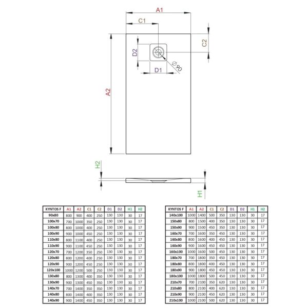 width= Отверстия в поддоне — Ø90мм