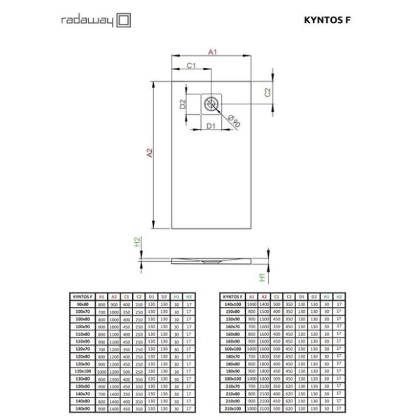 width= Отверстия в поддоне — Ø90мм