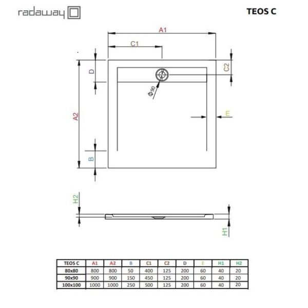 Душевой поддон Radaway Teos C 900x900x40, литой камень, цемент HTC9090-74
