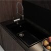 Кухонная мойка LAGOON 760 black имеет однородную текстуру и цвет. Она не впитывает запахи, отталкивает жир и загрязнения, а также не меняет своего цвета в процессе использования.