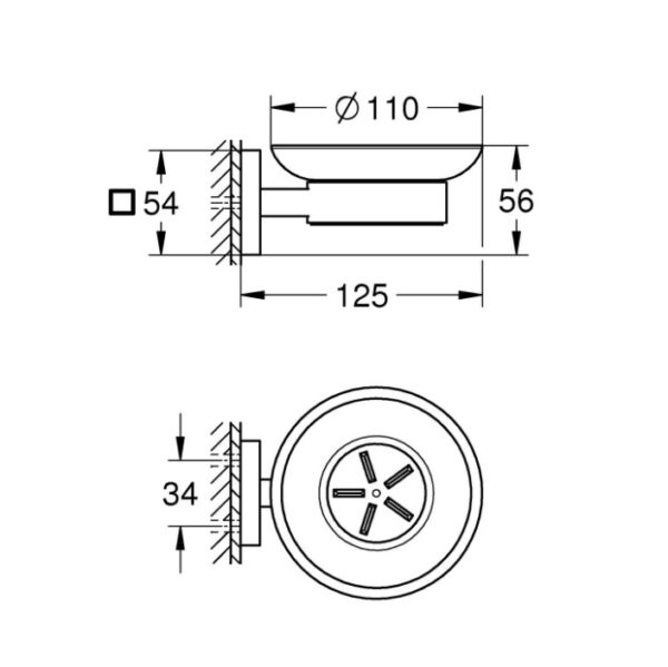 - Установка: подходит для прикручивания (с использованием шурупов и дюбелей) или приклеивания (клеевые комплекты GROHE QuickGlue A1 41 127 000 продаются отдельно)