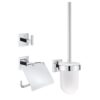 Представляем вам функциональный и стильный комплект аксессуаров GROHE Start Cube 3-в-1, созданный для тех, кто ценит безупречный дизайн и практичные решения. В этот универсальный набор входят самые необходимые элементы для обустройства ванной комнаты: держатель для туалетной бумаги с крышкой, крючок для халата и туалетный ёршик с держателем.