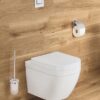 Набор аксессуаров для санузла 3 в 1 GROHE Essentials представляет собой комплексное решение для создания функционального интерьера ванной комнаты в одном стилевом направлении. Все принадлежности входящие в этот комплект, обладают уникальным износостойким покрытием GROHE Long-Life Shine®, сохраняющим свою внешнюю привлекательность на протяжении многих лет. Состав набора включает: Держатель для туалетной бумаги (с крышкой) GROHE Essentials (40367001):