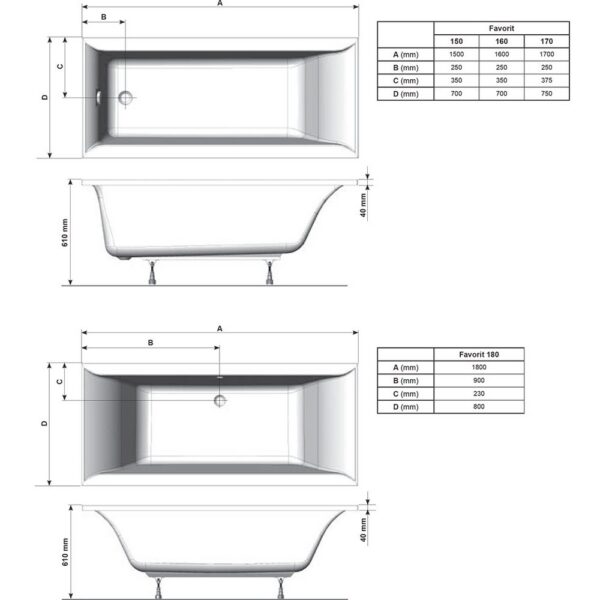 Ванна FAVORIT 150×70 — это практичное и универсальное решение для современной ванной комнаты. Простая прямоугольная форма и лаконичный дизайн позволяют легко интегрировать модель в любой интерьер. Благодаря акриловой поверхности ванна быстро нагревается, долго сохраняет тепло и обеспечивает комфорт во время купания.