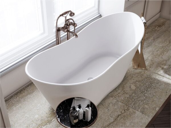 - Долговечность материала. Покрытие изделий и непосредственно материал, из которого изготавливается сантехника, обеспечивают долгий срок эксплуатации сантехнических изделий. Ванны из литого мрамора являются ремонтопригодными, устойчивыми к красителям и солнечным лучам.