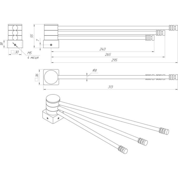 Полотенцедержатель Laris Кватро ПП-300/3 предназначен для установки на стойку с основанием 30 мм и выполнен из нержавеющей стали AISI304. Высота полки составляет 55 мм, ширина — 36 мм, а глубина — 313 мм. Эта съемная поворотная полка позволяет удобно разместить полотенца в ванной комнате благодаря трем поворотным секциям. При установке используются три штифта и шестигранный ключ, которые идут в комплекте, чтобы избежать повреждений полотенцесушителя. Кроме того, полка предоставляет возможность перемещения по вашему усмотрению, что добавляет удобства в использовании.