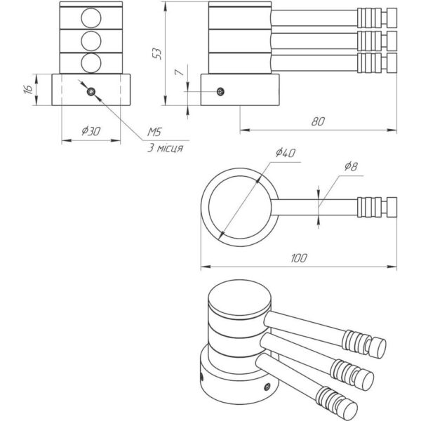 Полотенцедержатель Laris Классик ПП-80/3 на стойку (71401070):
