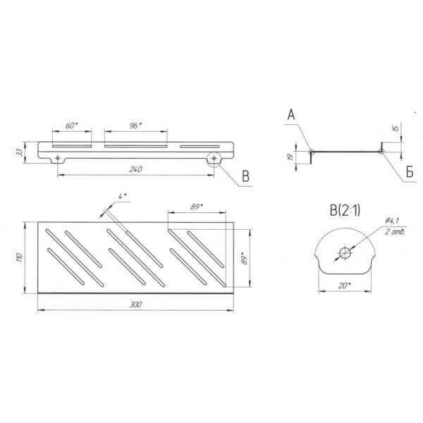 Полочка Laris Mini 300 изготовлена из нержавеющей стали AISI304, с основанием из металлического листа толщиной 1,2 мм. Ее размеры: высота — 33 мм, ширина — 300 мм, глубина — 110 мм. Эта прямая полка предназначена для удобного хранения вещей и банных принадлежностей. Установка полки проста, а декоративные колпачки для шурупов скрывают крепеж, обеспечивая аккуратный и стильный вид. Комплектация включает: одну прямую полку, два оцинкованных шурупа с дюбелями, шайбы и прокладки, два декоративных колпачка, а также паспорт изделия.