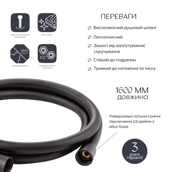 Шланг для душа Qtap Hadice PVC160B изготовлен из прочного полимера черного цвета, который обеспечивает гибкость, надежную защиту от протечек и расслаивания. Такой материал отличается долговечностью и служит дольше, чем шланги с металлической или пластиковой оплеткой. Гладкая поверхность упрощает уход — достаточно протереть её губкой с мягким моющим средством, чтобы сохранить безупречный внешний вид изделия.