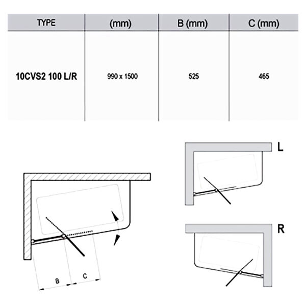 Шторка для ванны RAVAK 10CVS2-100 Сатин Transparent левосторонняя, арт. 7QLA0U03Z1