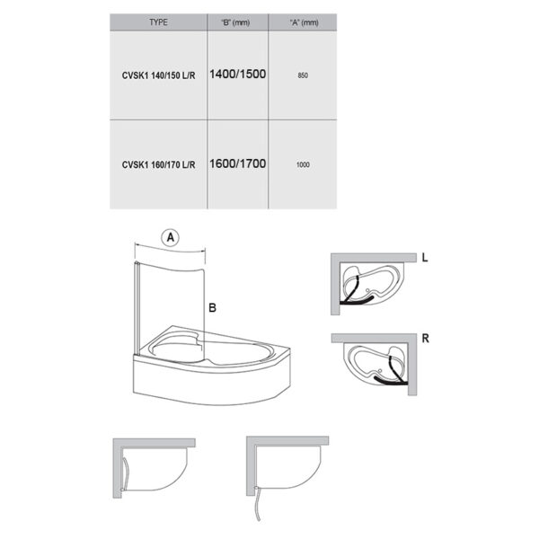 Шторка для ванны RAVAK CVSK1 Rosa 160/170 Белый Transparent левосторонняя, арт. 7QLS0100Y1