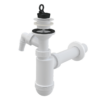 Сифон для умывальника Alcaplast A42P d40 с подводкой и пластмассовой решёткой d63. Пробка — материал ПВХ. Решетка слива — белый пластик.