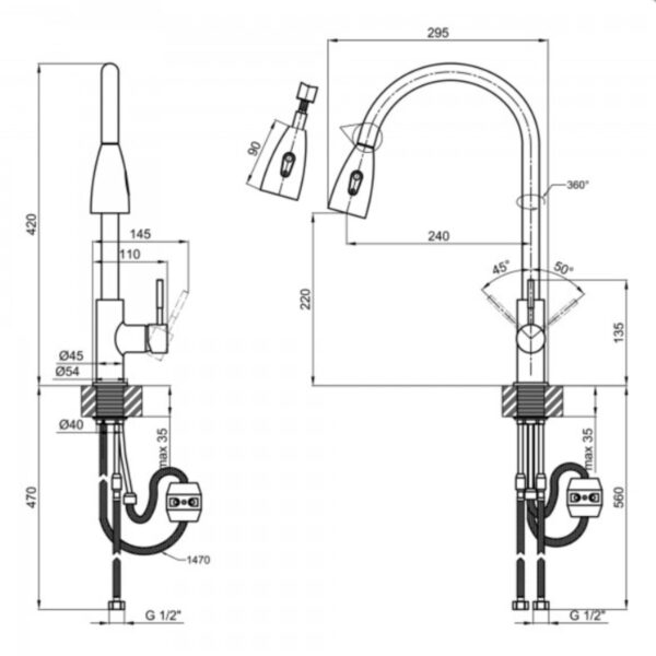 | Дополнительные характеристики | Длина выдвижного шланга — 1470 мм. |