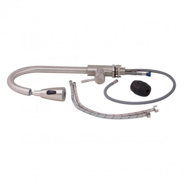 | Комплектация | Смеситель, гибкая подводка, шланг для выдвижной лейки, якорь, крепежи. |