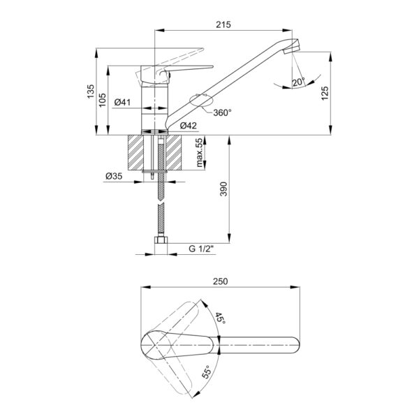 | Длина Излива, мм | 215 |