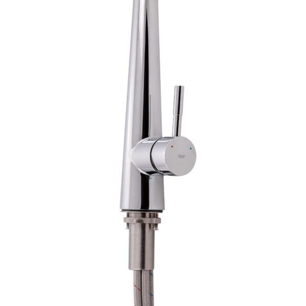 Смеситель для кухни с выдвижным изливом Qtap Evicka 9135103UC изготовлен из высококачественной нержавеющей стали с глянцевым хромированным покрытием, которое обеспечивает долговечность и безупречный внешний вид изделия. Выдвижной излив длиной 1470 мм и два режима подачи воды, переключаемые кнопкой, позволяют легко очищать труднодоступные участки посуды и раковины. Регулировка температуры и напора воды осуществляется с помощью удобного рычага, обеспечивая комфортное и простое управление.