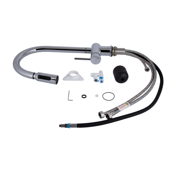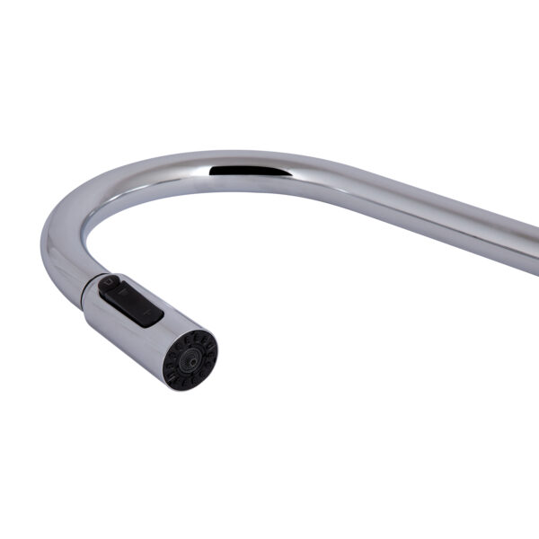 Смеситель для кухни Qtap Rozcesti QTROZ366CRM45938 в хромированном исполнении сочетает современный дизайн и высокую функциональность. Выдвижной излив обеспечивает удобство при наполнении больших ёмкостей и облегчает уход за посудой, включая труднодоступные участки. Подключение для питьевой воды позволяет получать чистую воду без необходимости установки отдельного крана. Хромированное покрытие защищает смеситель от коррозии и повреждений, сохраняя его долговечность и эстетичную привлекательность.
