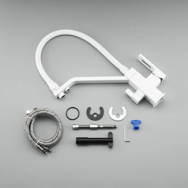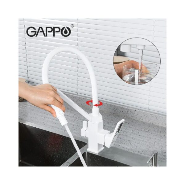 Смеситель для кухни с фильтром Gappo G4317-8 с гибким изливом в белом цвете — это стильное и практичное решение для современной кухни. Он сочетает в себе эстетичность, функциональность и высокое качество исполнения.