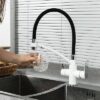 Смеситель для кухни Gappo G4348 с фильтром, представленный в белом и хромированном цветах, добавит вашей кухне современности и элегантности. Изготовленный из высококачественной латуни, он отличается стойкостью к коррозии и долгим сроком службы.