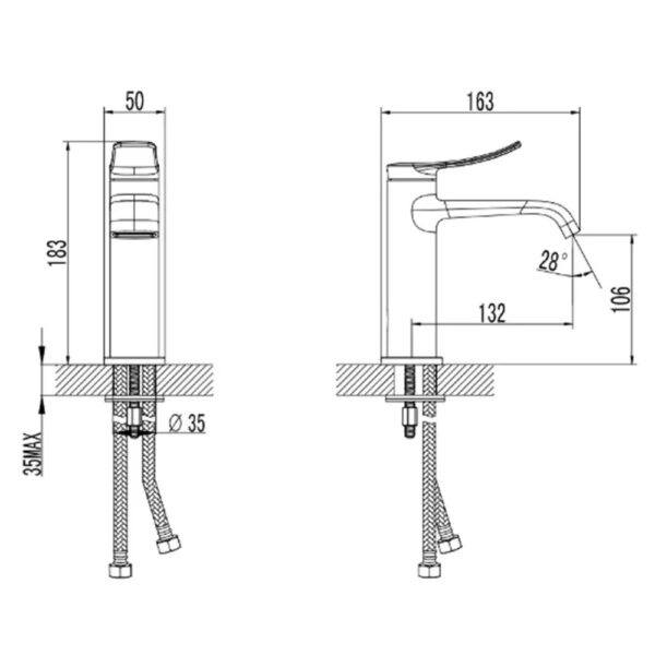 Комплектация: смеситель, шланги для подвода воды, крепления