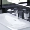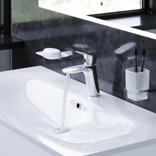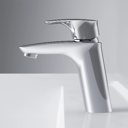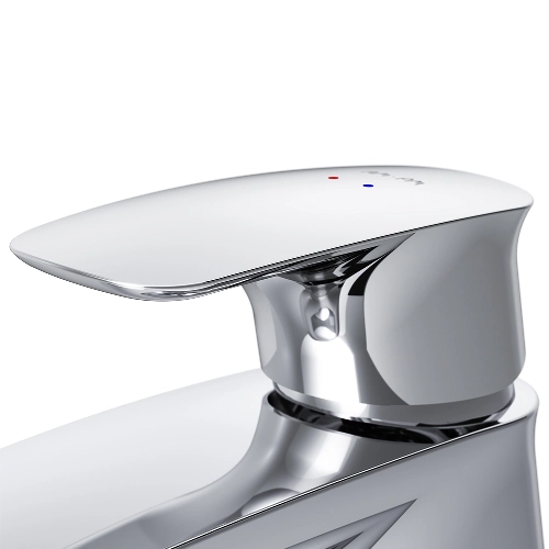 Эргономичность — ключевая особенность этой модели: безупречно продуманная форма ручки идеально ложится в ладонь, обеспечивая комфортное управление. Наклон и плавный изгиб корпуса смесителя делают его удобным для использования на высокой раковине.