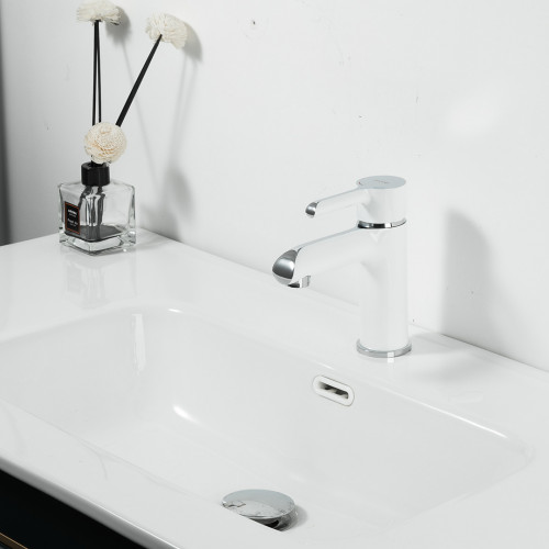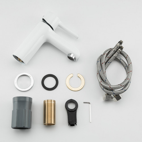 Маленький смеситель Gappo G1003-8 в бело-хромовом цвете представляет собой стильное решение для ванной комнаты. Корпус, выполненный из латуни и окрашенный в белый цвет, придает ему свежий и элегантный вид. Дизайн излива с аккуратными и стильными скосами линий придает уникальность смесителю. Гайка для крепления смесителя к раковине также изготовлена из латуни и имеет обозначение F34101-6. Аэратор с наружной резьбой (G72-3), легко снимаемый с помощью специального ключа, обеспечивает удобство обслуживания. Гибкие подводки с длиной 50 см и стандартным присоединительным размером 1/2 упрощают установку смесителя.ХАРАКТЕРИСТИКИ СМЕСИТЕЛЯ ДЛЯ РАКОВИНЫ GAPPO G1003-8: