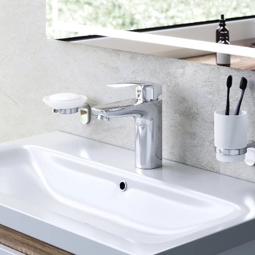 Идеальная геометрия, разработанная по стандарту SA (Smart Angle), включает математически выверенное соотношение высоты смесителя, длины излива и угла наклона корпуса, что делает его удобным для умывальников размером от 50 до 120 см.