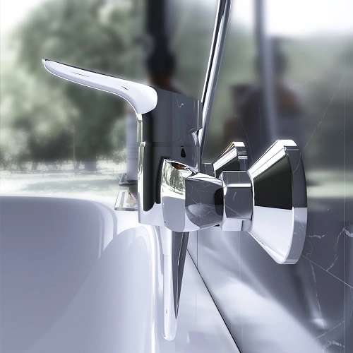 Минималистичный и аккуратный дизайн смесителя для душа подходит для ванной комнаты в классическом и ультрасовременном стиле. Смеситель занимает минимальное пространство.