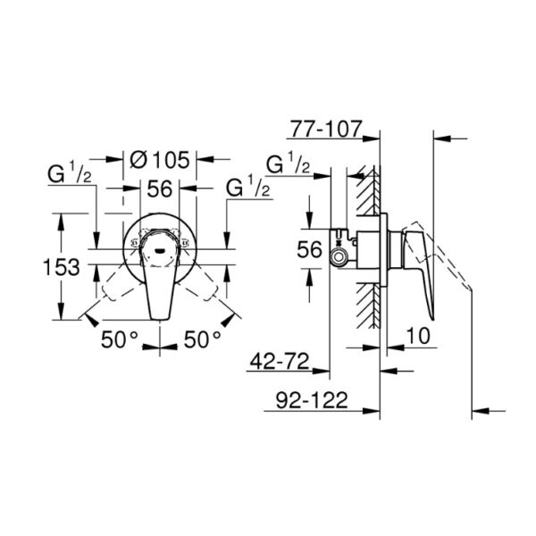 • Механизм: Керамический картридж GROHE Longlife 46 мм