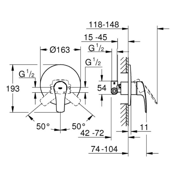 • Картридж: Керамический GROHE SilkMove® 46 мм