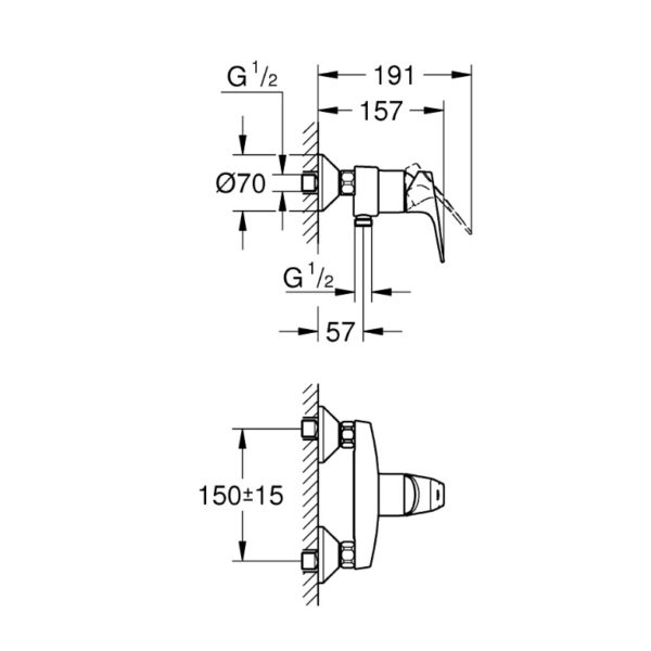 Однорычажный смеситель для душа GROHE Eurosmart New сочетает лаконичный современный дизайн с высокой функциональностью, обеспечивая комфорт и надежность при ежедневном использовании.