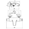 Термостатический смеситель оснащен керамическим картриджем для регулирования напора воды и термостатическим картриджем для регулирования температуры воды. Корпус смесителя изготовлен из латуни и покрыт хромом. Смеситель оснащен регулятором напора воды с указателями положения «душ-Off-ванна» и правым регулятором температуры воды с нанесенной разметкой горячая/холодная вода. Блокировка температуры воды настроена максимально на 38°C. При прекращении подачи холодной воды немедленно блокируется горячая.