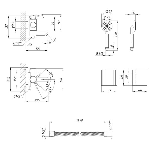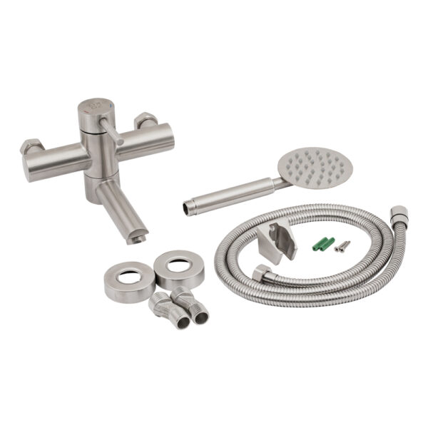 Комплектация | Смеситель, лейка для ручного душа, душевой шланг, кронштейн для ручного душа, крепежи. |