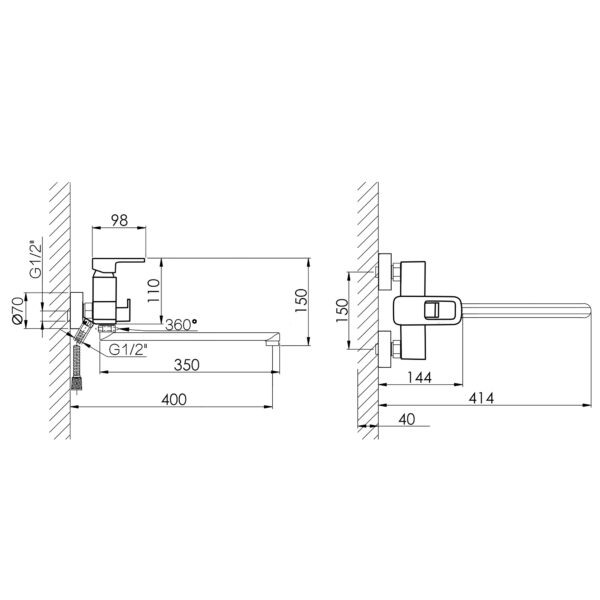 Комплектация | Смеситель, лейка для ручного душа, душевой шланг, кронштейн для ручного душа, крепежи. |
