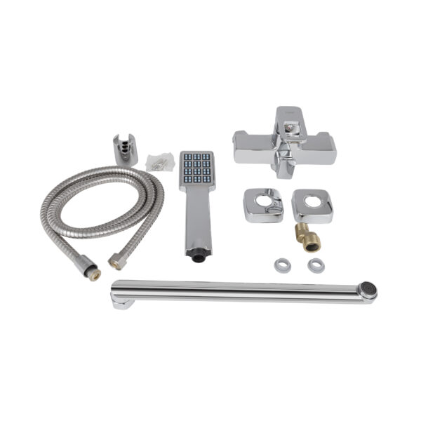 Комплектация | Смеситель, лейка для ручного душа, душевой шланг, кронштейн для ручного душа, крепежи. |
