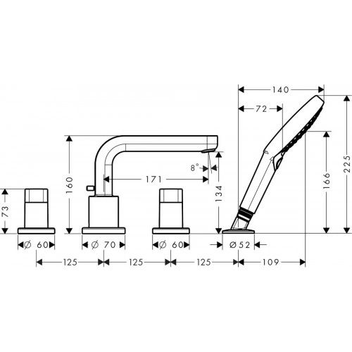 Смеситель для ванны на 4 отверстия Hansgrohe Metris S, хром, арт. 31443000