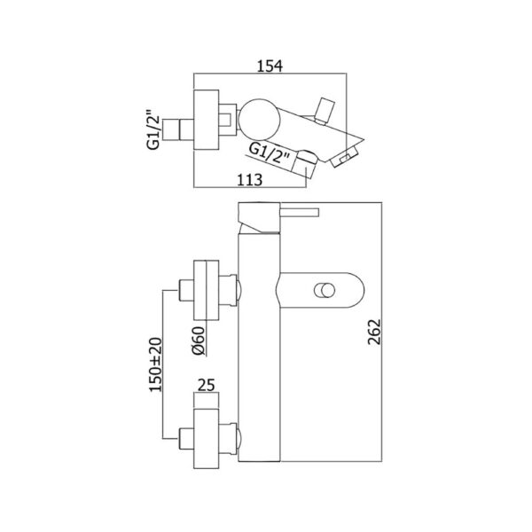 Монтаж осуществляется на два отверстия, тип установки — настенный. Комплект включает всё необходимое для установки.