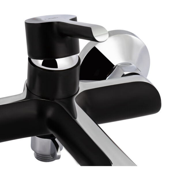 Смеситель для ванны Qtap Grand BCR 006 выполнен из прочной и износостойкой латуни с равномерным чёрным покрытием, которое придаёт изделию стильный внешний вид и повышает устойчивость к механическим повреждениям. В комплект входят лейка с настенным держателем и душевой шланг. Подача воды регулируется удобным рычагом, а переключение на душевой режим осуществляется с помощью поворотного дивертора.