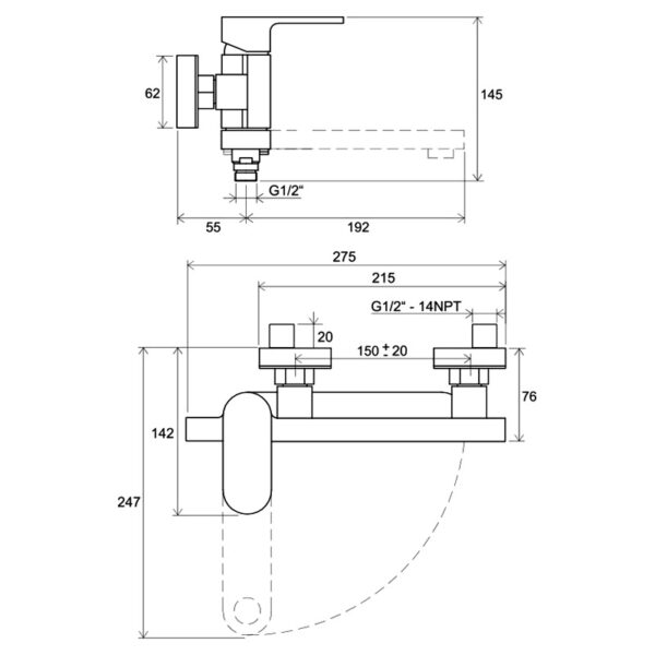 • Вынос от стены: 245 мм