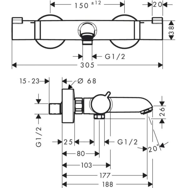 Смеситель с термостатом для ванны hansgrohe Ecostat Comfort.