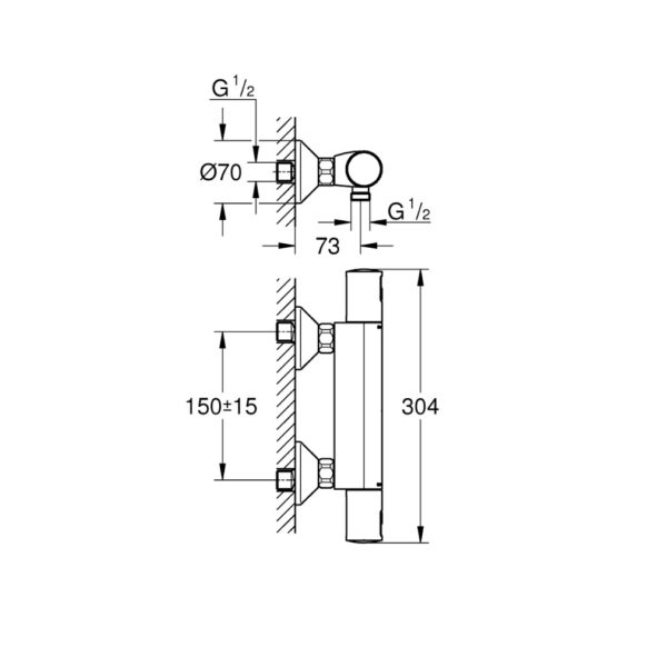 Этот смеситель предназначен для настенного монтажа и обладает долговечным покрытием поверхности GROHE Long-Life Shine. В его сердце находится встроенный термоэлемент GROHE TurboStat, который обеспечивает мгновенную и стабильную регулировку температуры воды. Безопасность также важна, и GROHE SafeStop предлагает стопор безопасности при 38°C, предотвращая нежелательное перегревание.