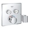 Внешняя часть термостатического смесителя для душа Grohe Grohtherm SmartControl 29125000 с держателем придает интерьеру ванной комнаты современный и элегантный вид. Прочная хромированная поверхность смесителя надежно защищает от воздействия коррозии и сохраняет свой безупречный внешний вид на долгие годы. Изготовленная из высококачественной латуни, внешняя часть смесителя гарантирует долговечность и устойчивость к механическим повреждениям. Скрытая часть, Grohe Rapido SmartBox 35600000, приобретается отдельно. Благодаря инновационной системе Grohe QuickFix, монтаж данного комплекта становится легким и удобным, не требуя использования дополнительных крепежных элементов.
