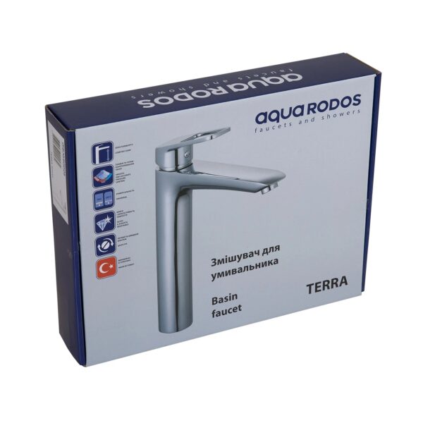 Гибкий тип подвода облегчает установку, а на покрытие и сам продукт предоставляется гарантия сроком 5 лет. Смеситель является частью коллекции Terra от бренда AquaRodos, которая отличается функциональностью и современным дизайном.